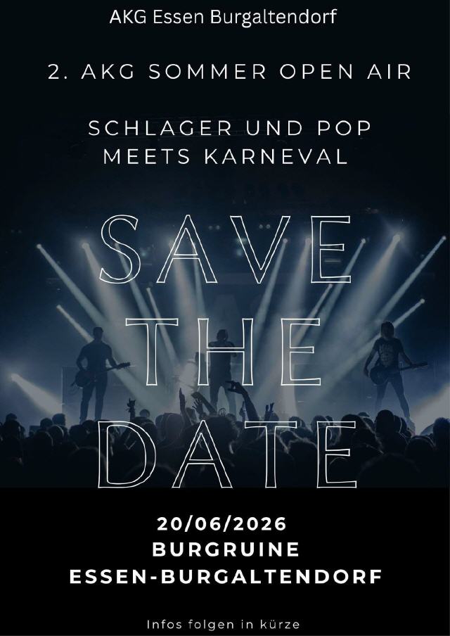 AM 20.06.2026 FINDET AN DER BURGRUINE UNSER 2. AKG SOMMER OPEN AIR STATT